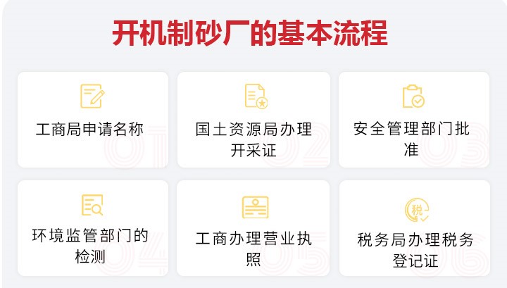 工商局申請名稱→國土資源局辦理開采證→安全管理部門批準→環(huán)境監(jiān)管部門的檢測→工商辦理營業(yè)執(zhí)照→稅務(wù)局辦理稅務(wù)登記證。